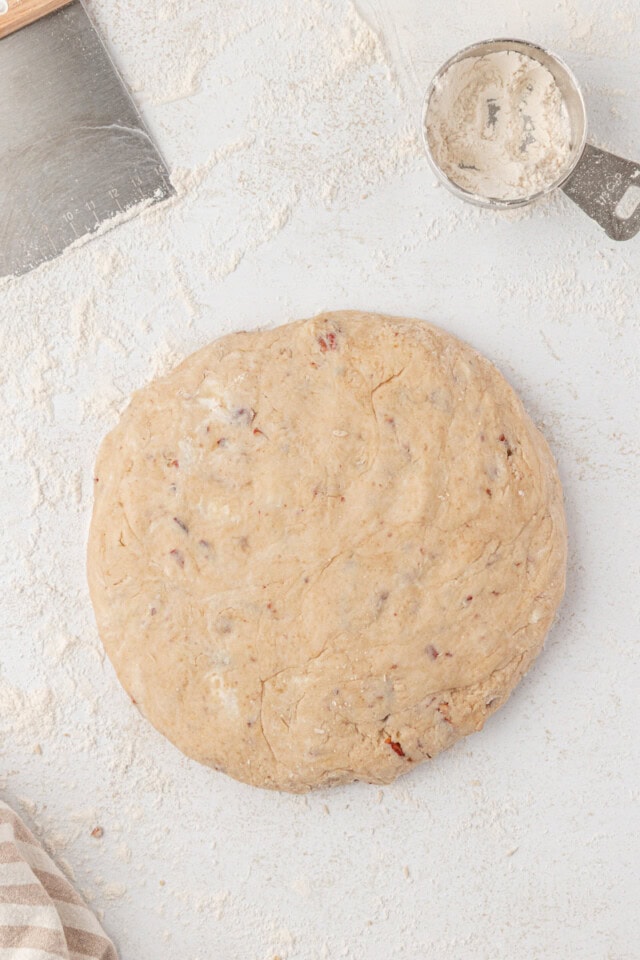 Lightly knead the dough a few times on a floured surface, then pat it into a 7-inch circle. Cut into 8 wedges with a sharp knife or bench scraper.