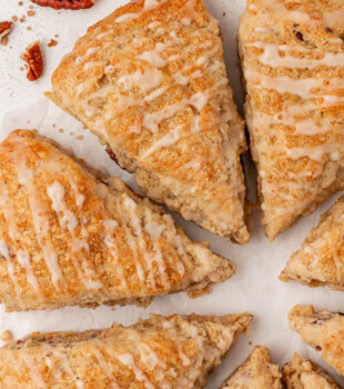 There’s something about the aroma of maple and toasted pecans that just says fall, and these maple scones are a celebration of that cozy combination. They’re wonderfully soft and tender, with just enough sweetness to enjoy as a breakfast treat or an afternoon pick-me-up. The chopped pecans bring a lovely crunch, and the maple glaze drizzled over the top adds the perfect finishing touch.