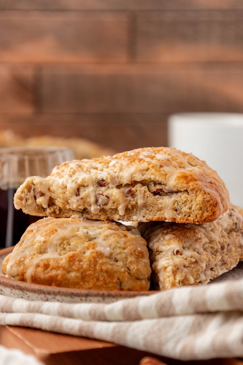 These maple scones are just the thing for cozy fall mornings—simple, buttery, and finished with a sweet maple glaze.