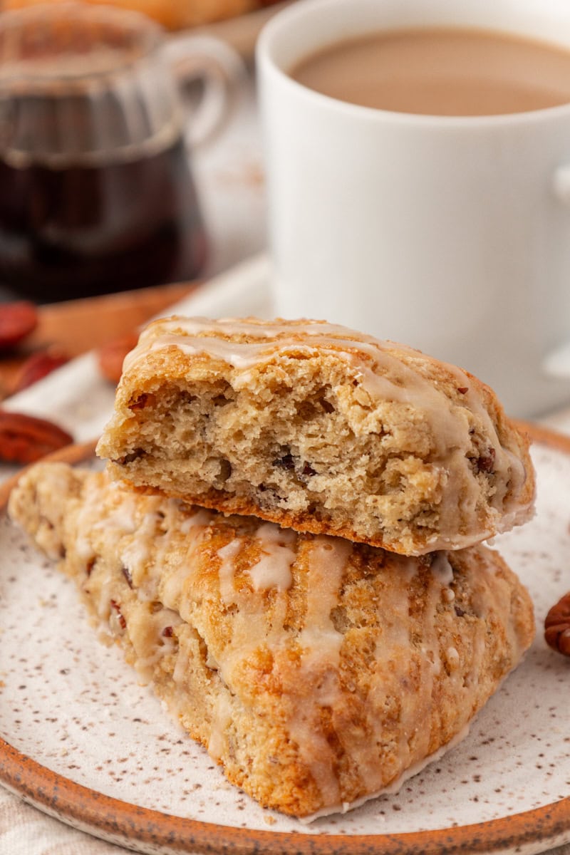 - Cozy fall flavor. These scones highlight the warm, comforting sweetness of maple paired with nutty pecans. An instant autumn classic!